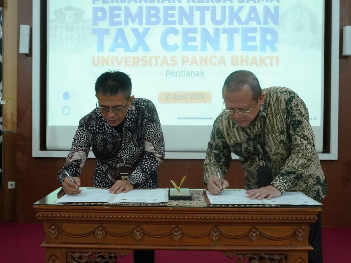 KUNDIANDAILY.COM, PONTIANAK — Direktorat Jenderal Pajak (DJP) Kalimantan Barat bersama Universitas Panca Bhakti Pontianak memperpanjang Perjanjian Kerja Sama (PKS) Tax Center pada Senin (21/4/2026) di Aula Sungai Melawi Kanwil DJP Kalbar sebagai upaya memperkuat literasi perpajakan mahasiswa melalui praktik langsung edukasi pajak di lingkungan kampus dan masyarakat.